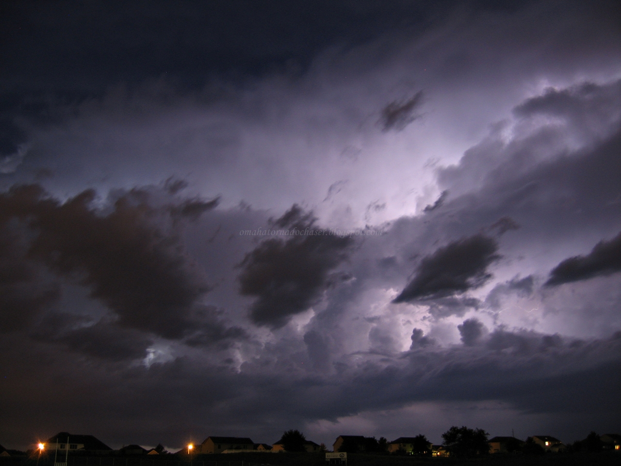 The shot below was the lone good shot I got of a high based tstorm that moved through town on the night of the 23rd of August. The lightning with this, although not frequent, was very impressive. It had very sharp bolts that seemed to hit the Earth every time and then would make that loud boom of thunder. I barely missed 2-3 other good bolts with camera before coming inside after I no longer felt safe!